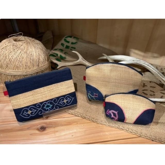 アイヌ刺繍入りアットゥシ織ポーチ
